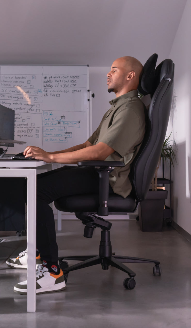 The Duelhawk lumbar support is made with a soft and supportive foam that conforms to the shape of your back, providing gentle support and pressure relief. This helps improve your posture and reduce back pain. The lumbar support also features a ventilated design that helps to keep you cool and comfortable all day long.